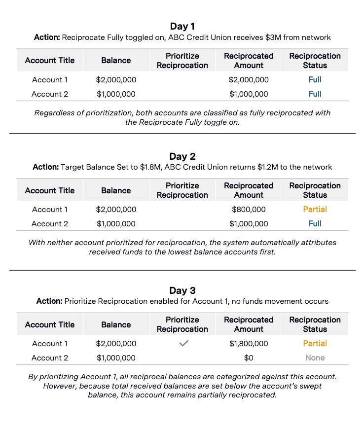 The Account-Level Reciprocation feature provides visibility into, and control of, how your institution's reciprocal balances are attributed across individual Extended Insurance Accounts. This supports more granular reporting of network activity to support account- and branch-level attribution of network outcomes and certain compliance obligations.